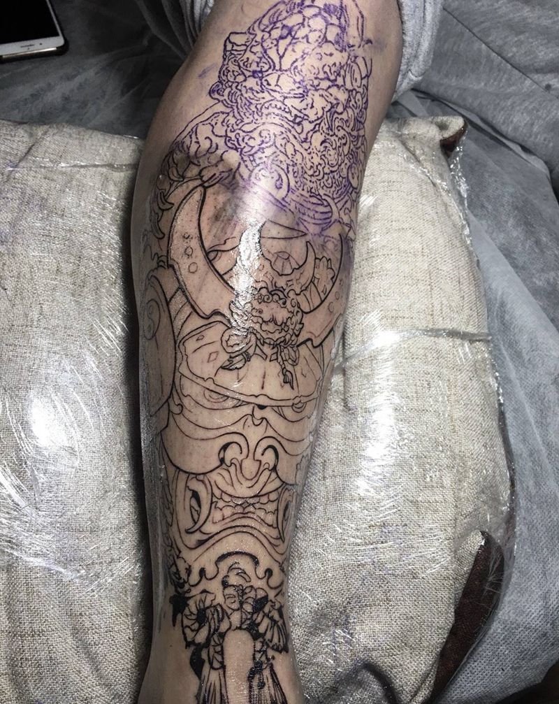 • T网红王老大花腿龙纹身图片_腿部新传统纹身图案