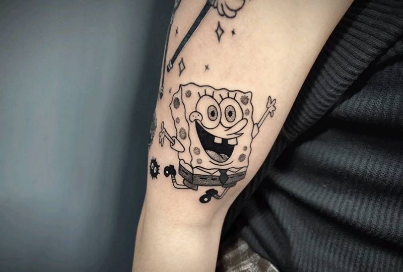 当前位置: 首页 >广东省广州市纹身店-广州天朝刺青处纹身图案>海绵宝宝纹身图片_手臂纹身图案