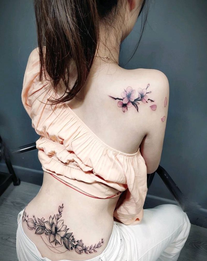 桃花纹身图片_肩部纹身图案