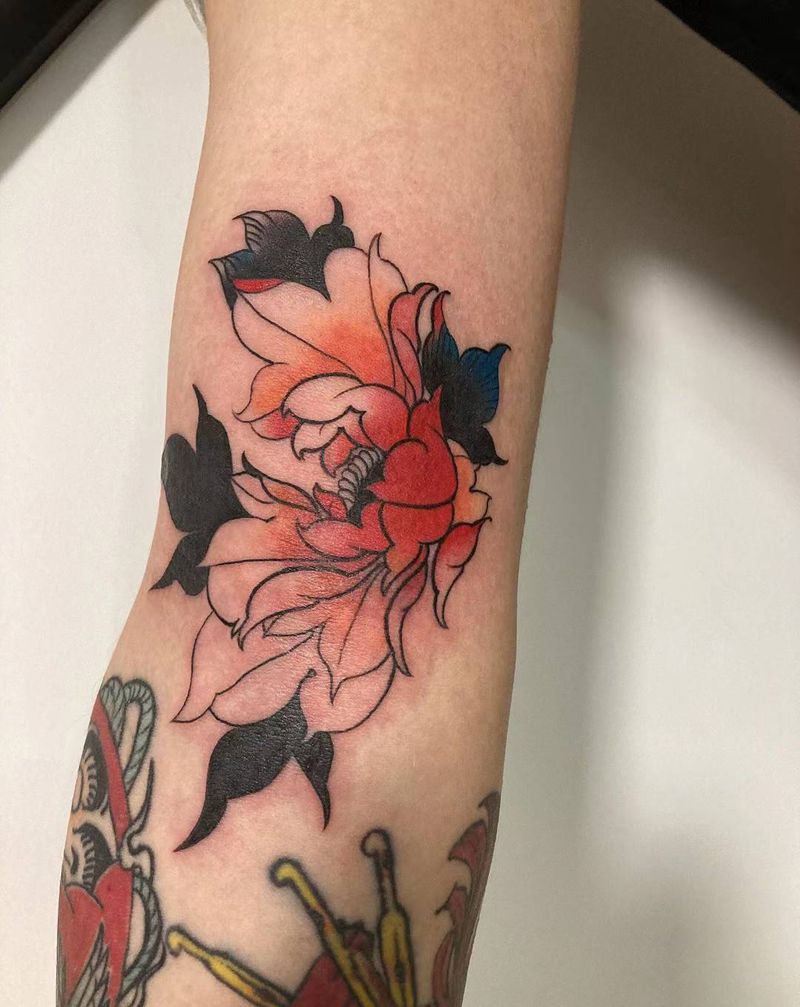 当前位置: 首页 >广东省广州市纹身店-广州夜印刺青纹身图案>一朵花纹身图片_手臂新传统纹身图案