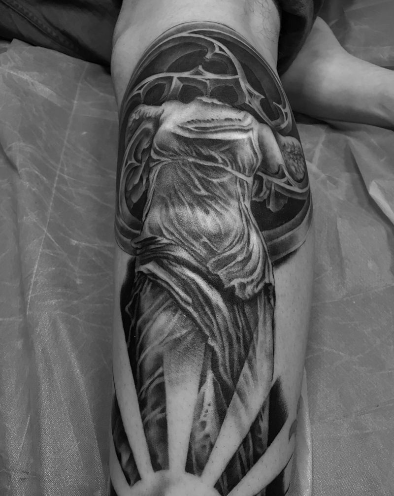 当前位置: 首页 >广东省广州市纹身店-广州夜印刺青纹身图案>胜利女神(未完)纹身图片_腿部欧美写实天使纹身图案