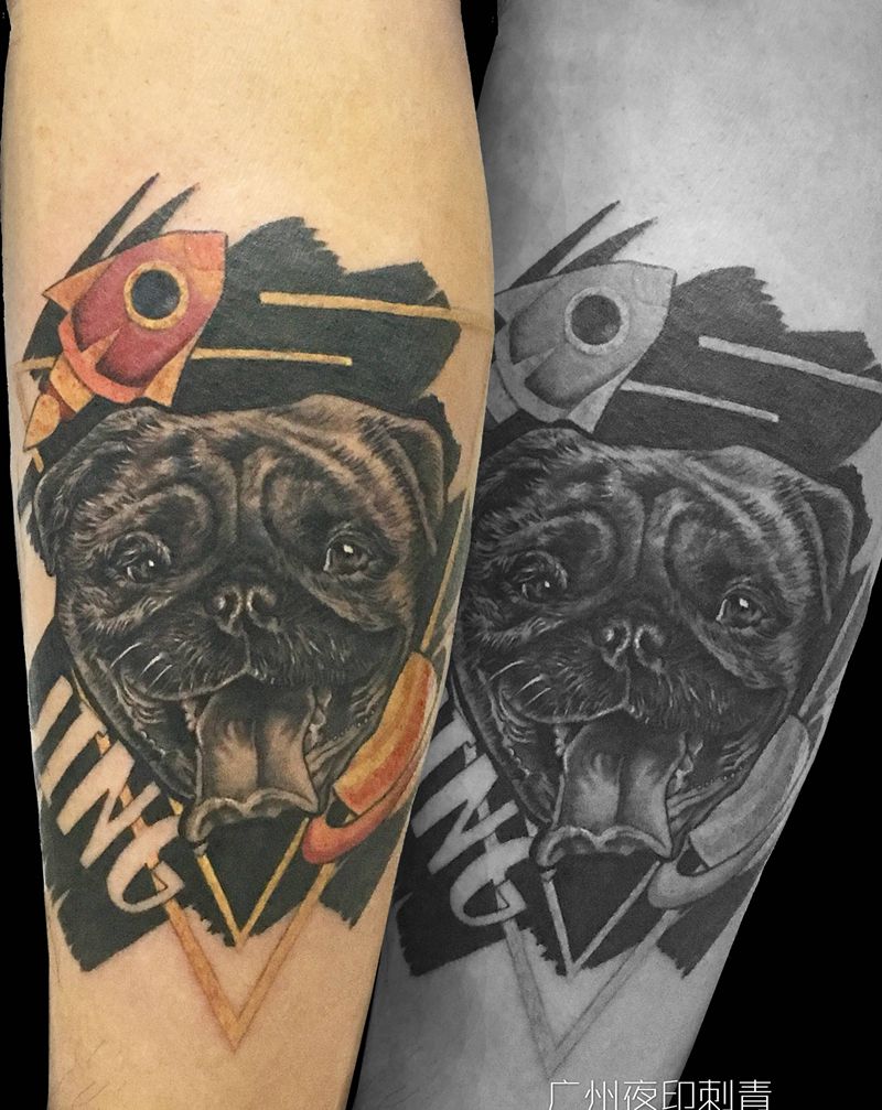 当前位置: 首页 >广东省广州市纹身店-广州夜印刺青纹身图案>八哥犬纹身图片_腿部欧美写实动物纹身图案