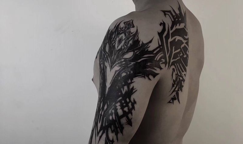 • 纹身吧推荐的披肩图腾半胛纹身图案作品展示