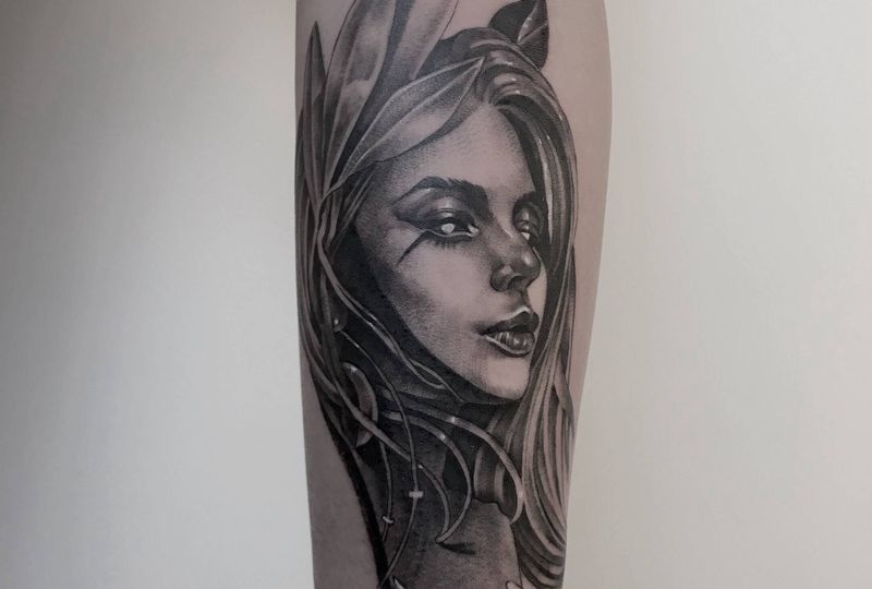 当前位置: 首页 >广东省广州市纹身店-广州夜印刺青纹身图案>小臂女性纹身图片_手臂欧美写实女纹身图案