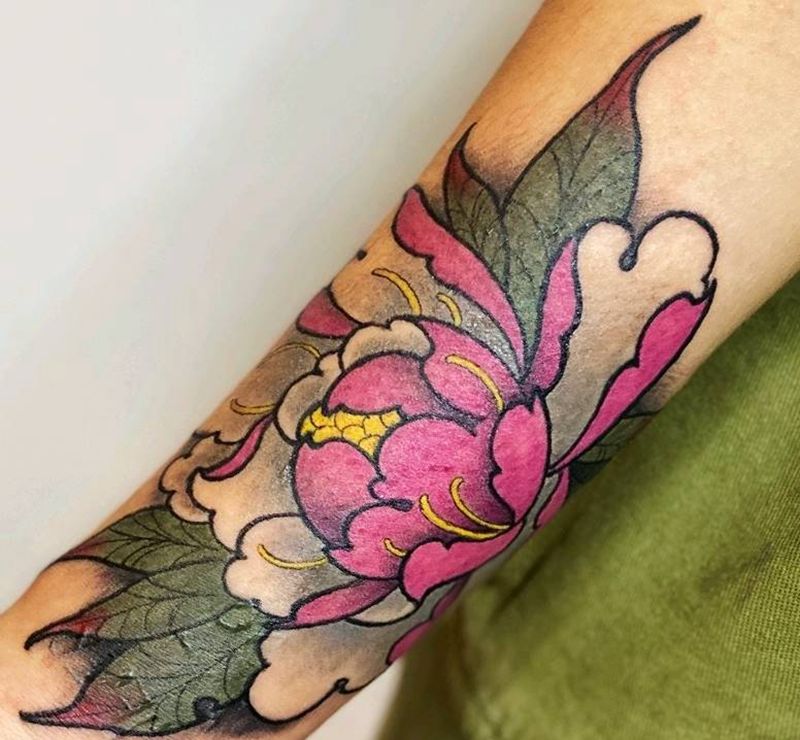 传统 牡丹纹身图片_手臂新传统花牡丹纹身图案