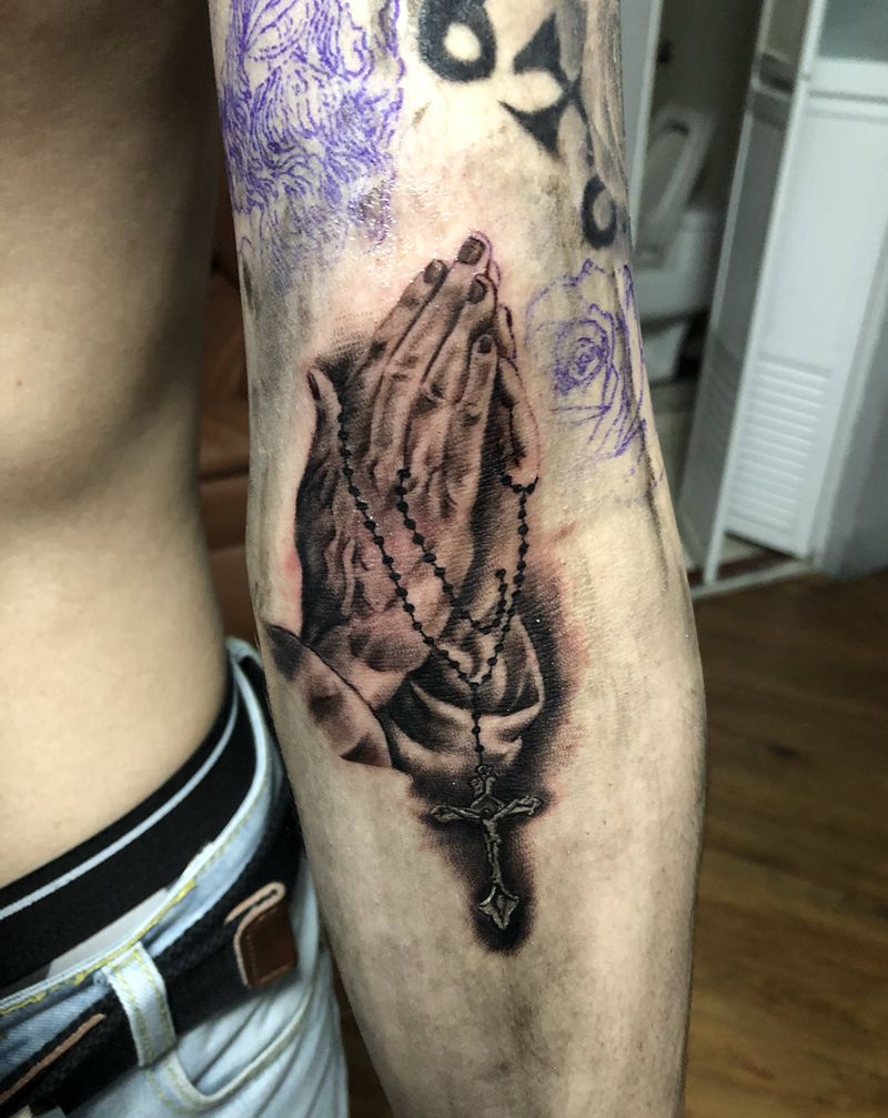 祈祷之手纹身图片_手部欧美写实纹身图案