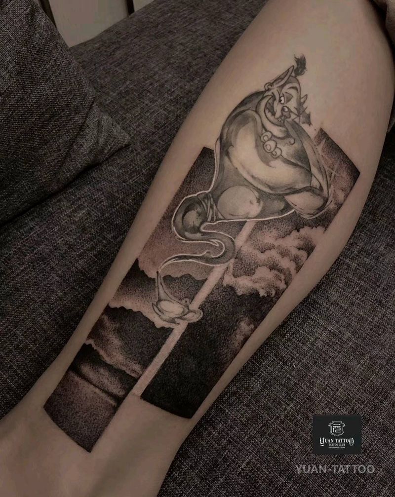 当前位置: 首页 >广东省广州市纹身店-YUAN-TATTOO 元刺青纹身图案>阿拉阿拉纹身图片_腿部水墨神话纹身图案