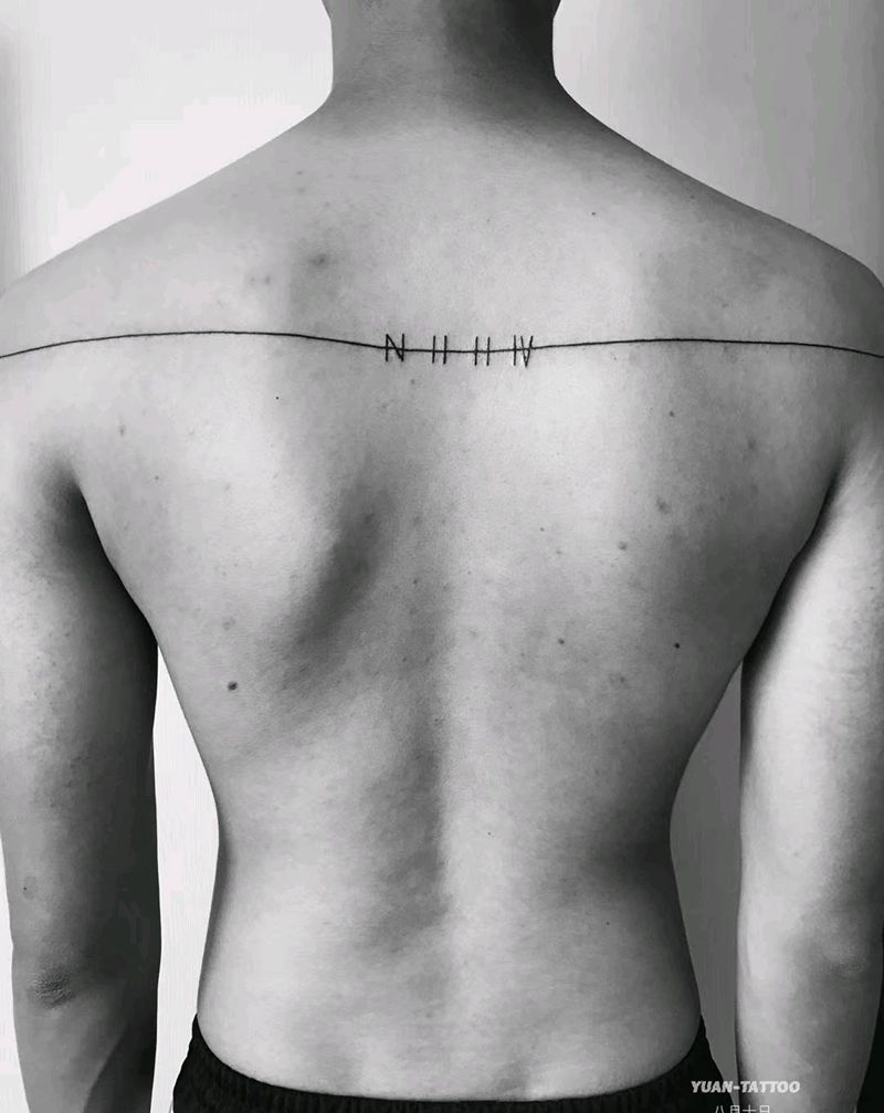 敢爱敢做纹身图片_背部几何线条文字纹身图案
