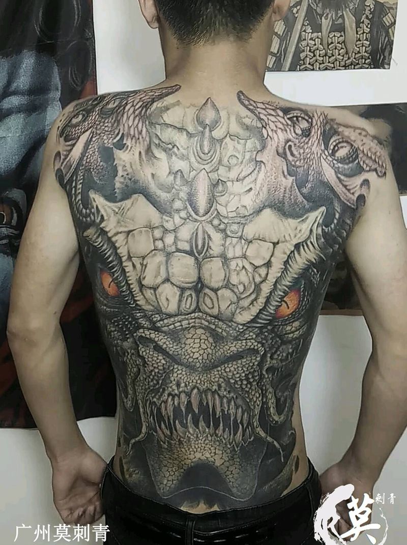当前位置: 首页 >广东省广州市纹身店-广州莫刺青纹身图案>龙威纹身图片_肩部背部欧美传统肖像写实国画成品手稿插画纹身图案
