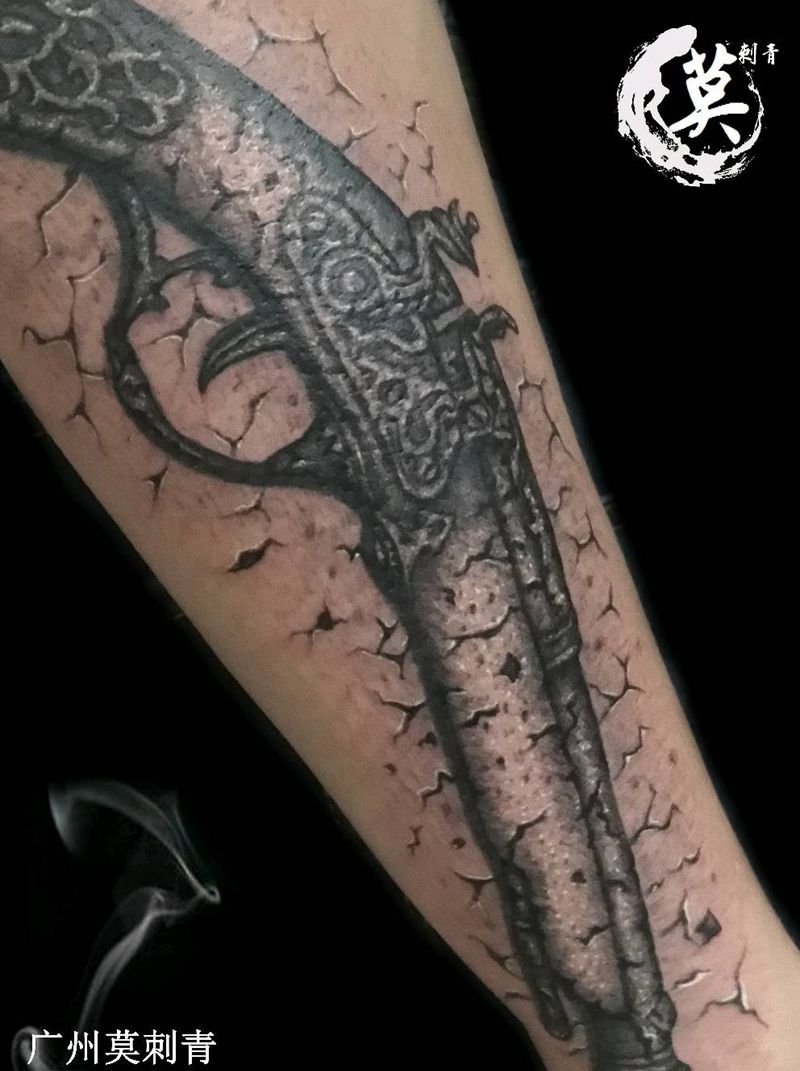 石雕枪纹身图片_手臂欧美传统习俗清新写实国画成品手稿插画纹身图案