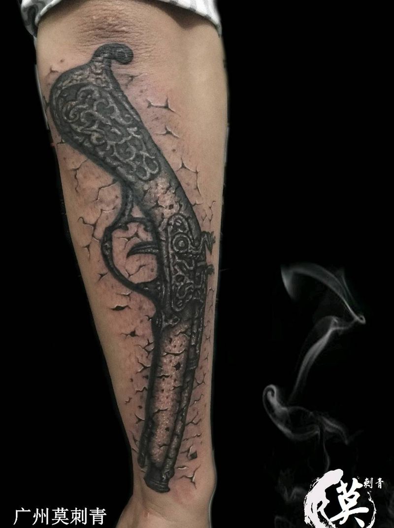 石雕枪纹身图片_手臂欧美传统习俗清新写实国画成品手稿插画纹身图案