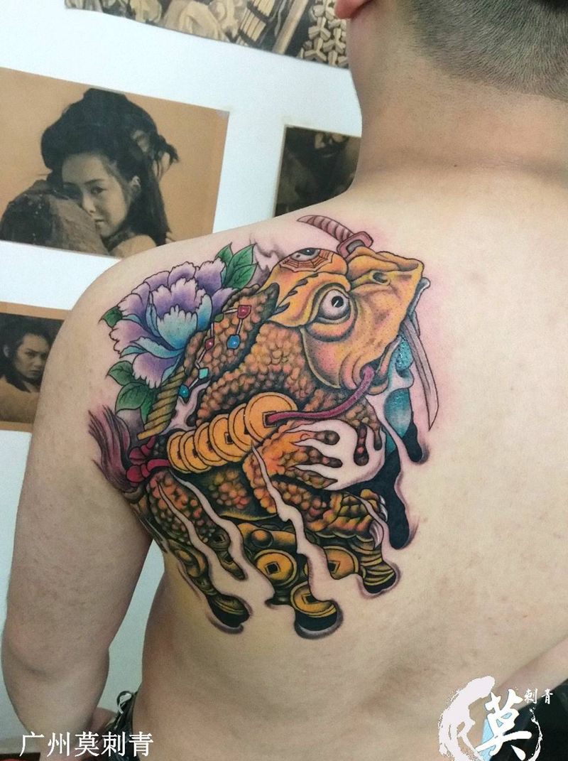 金蟾纹身图片_肩部背部欧美传统习俗清新写实国画成品手稿纹身图案