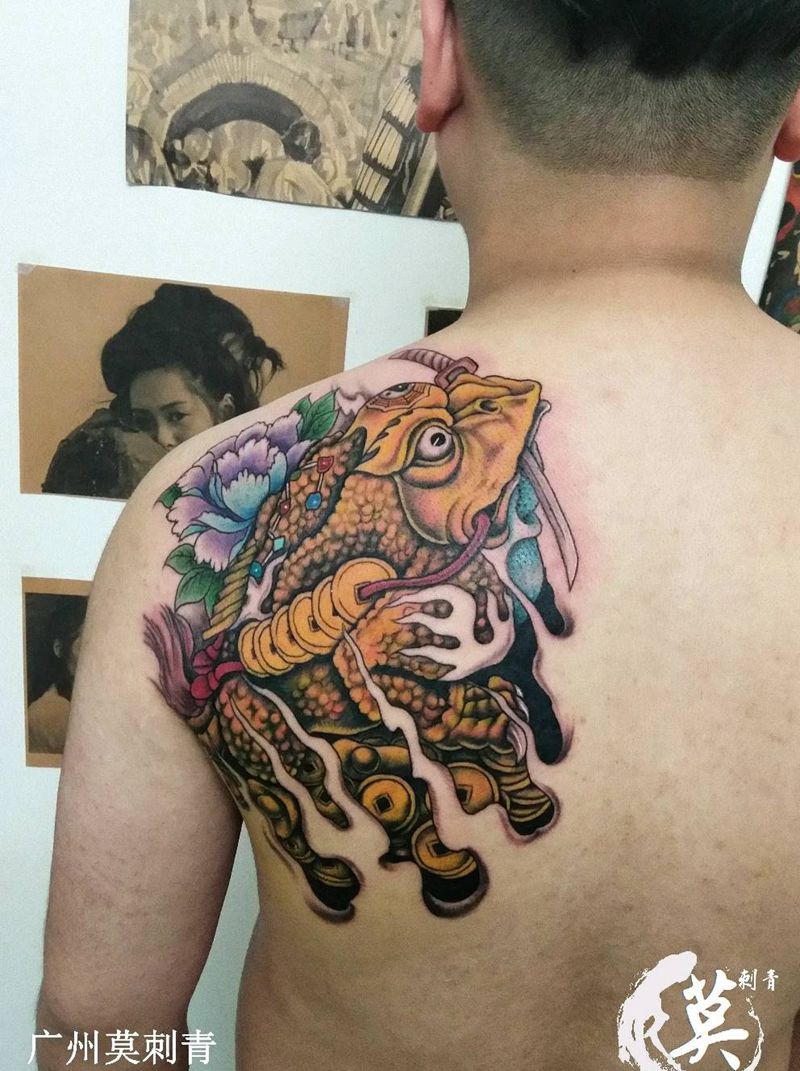 金蟾纹身图片_肩部背部欧美传统习俗清新写实国画成品手稿纹身图案