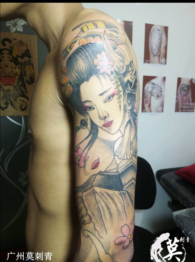 当前位置: 首页 >广东省广州市纹身店-广州莫刺青纹身图案>大臂艺妓纹身图片_臀部手臂欧美传统习俗肖像写实成品手稿插画纹身图案