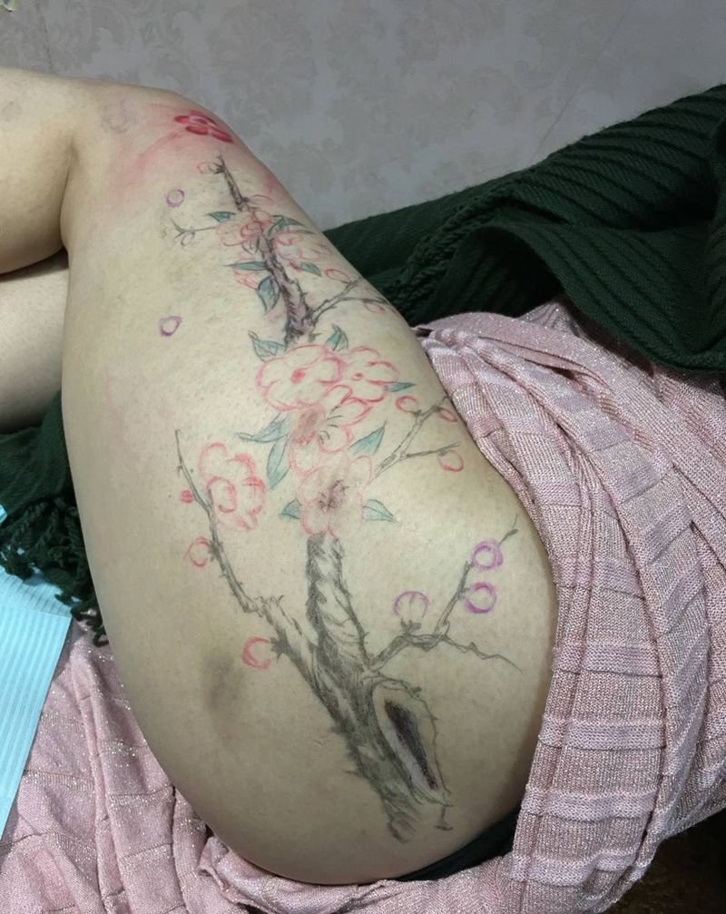 当前位置: 首页 >广东省广州市纹身店-天马堂刺青纹身图案>梅花蝴蝶盖疤纹身图片