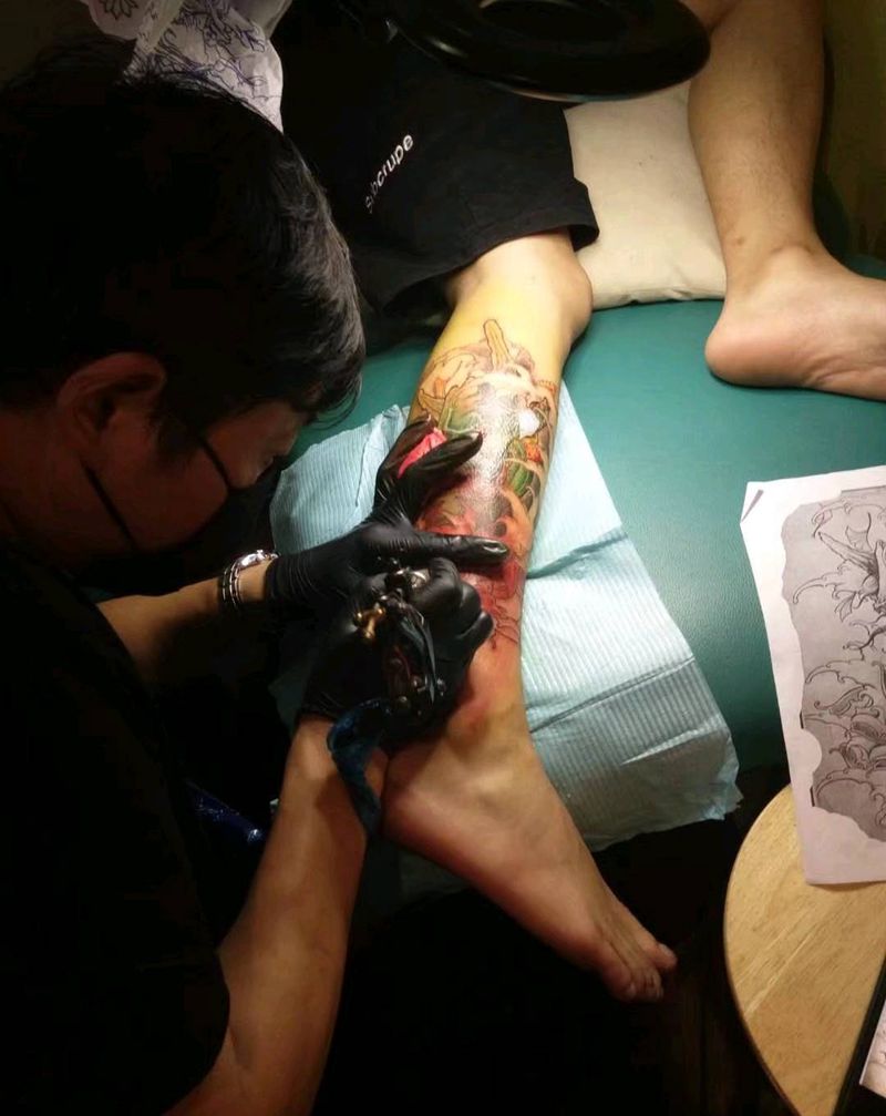 • T网红王老大花腿龙纹身图片_腿部新传统纹身图案