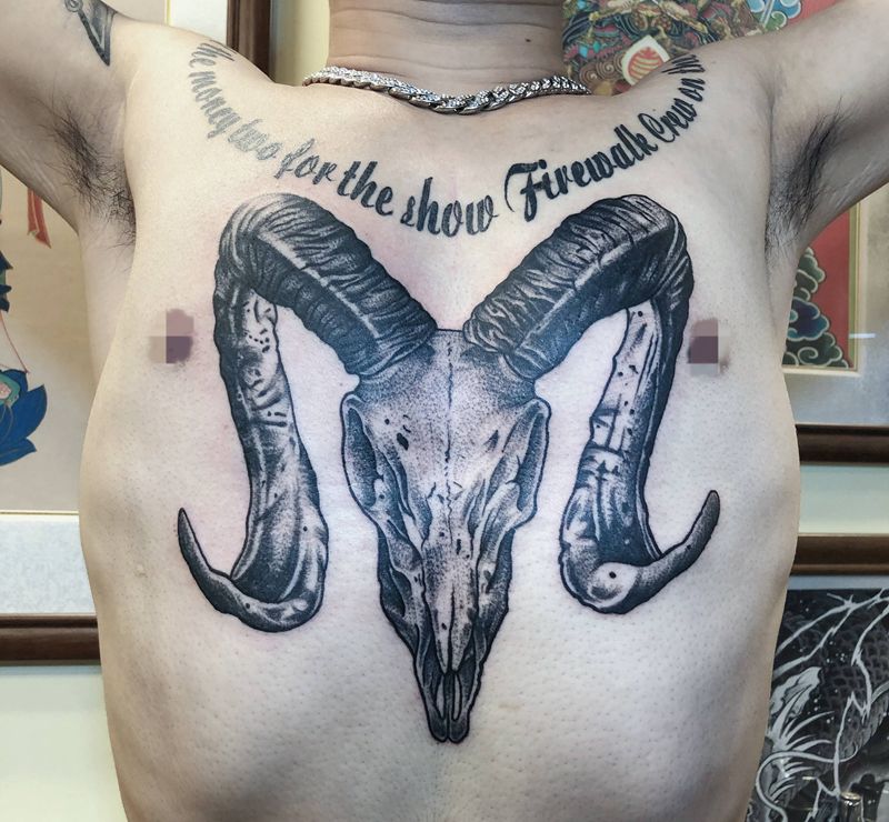 当前位置: 首页 >广东省广州市纹身店-肆海刺青纹身图案>羊头纹身图片_胸部点刺纹身图案