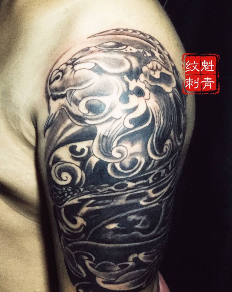 大臂貔貅纹身图片