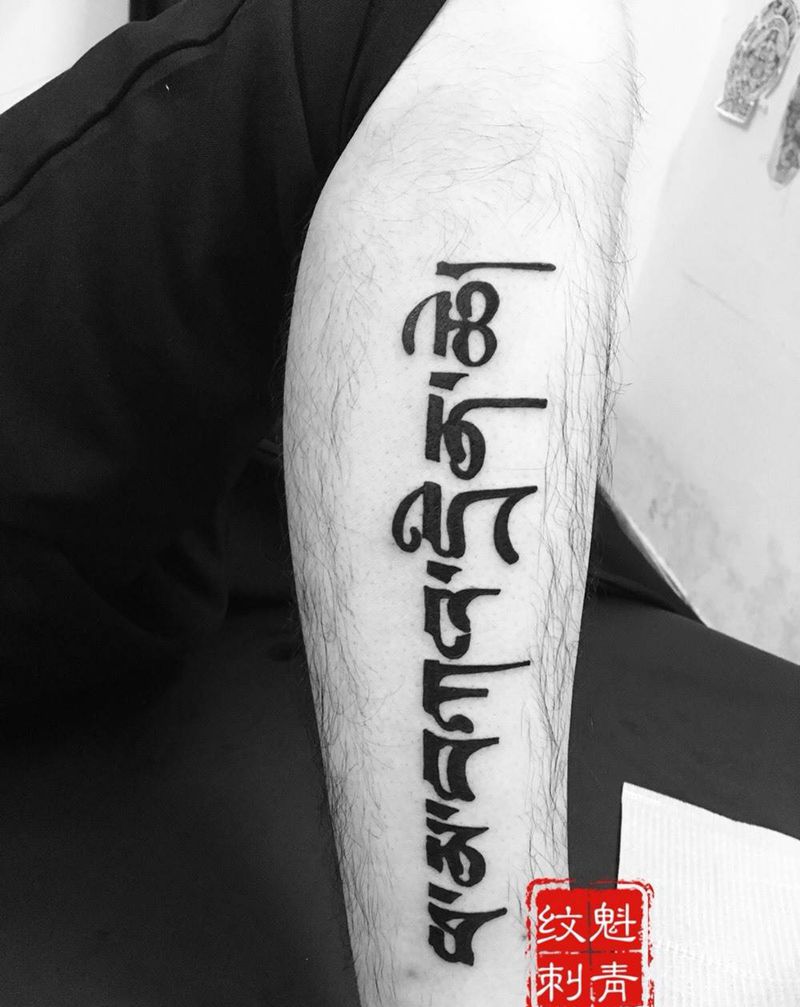 当前位置: 首页 >广东省广州市纹身店-肆海刺青纹身图案>梵文纹身图片_成品腿部字符几何纹身图案