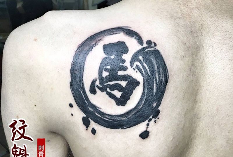 当前位置: 首页 >广东省广州市纹身店-肆海刺青纹身图案>汉字纹身图片_成品背部国画字符纹身图案