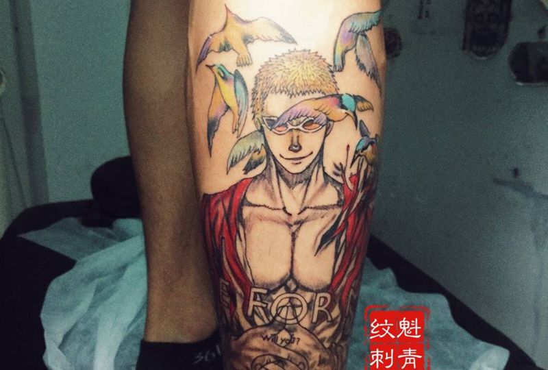 多弗朗明哥,未完成纹身图片_成品原创肖像清新人物脚部纹身图案