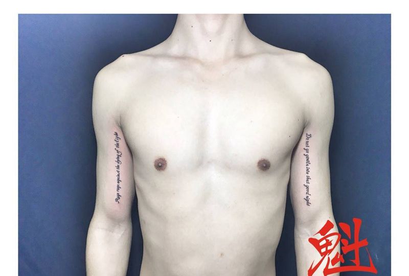 当前位置: 首页 >广东省广州市纹身店-肆海刺青纹身图案>英文两侧纹身图片_原创字符清新手臂成品纹身图案