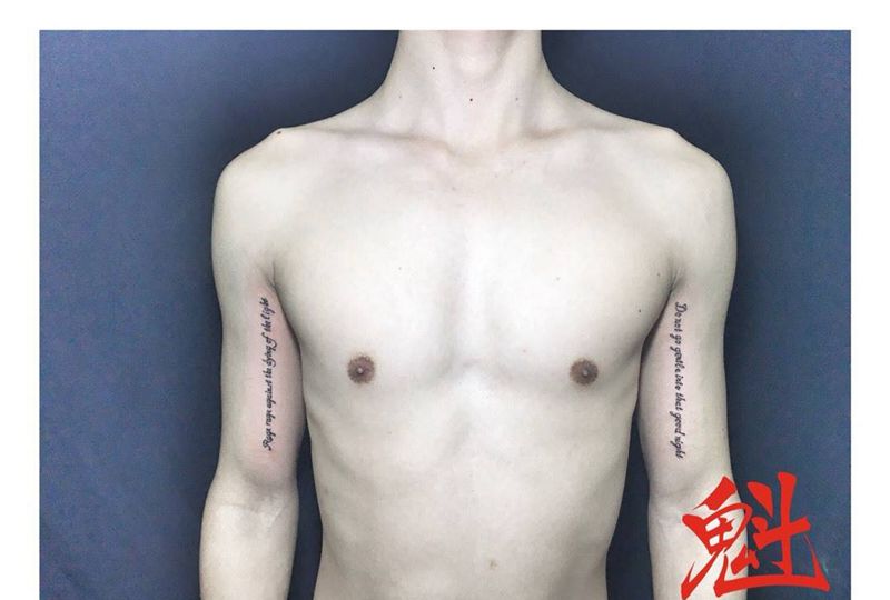 英文两侧纹身图片_原创字符清新手臂成品纹身图案