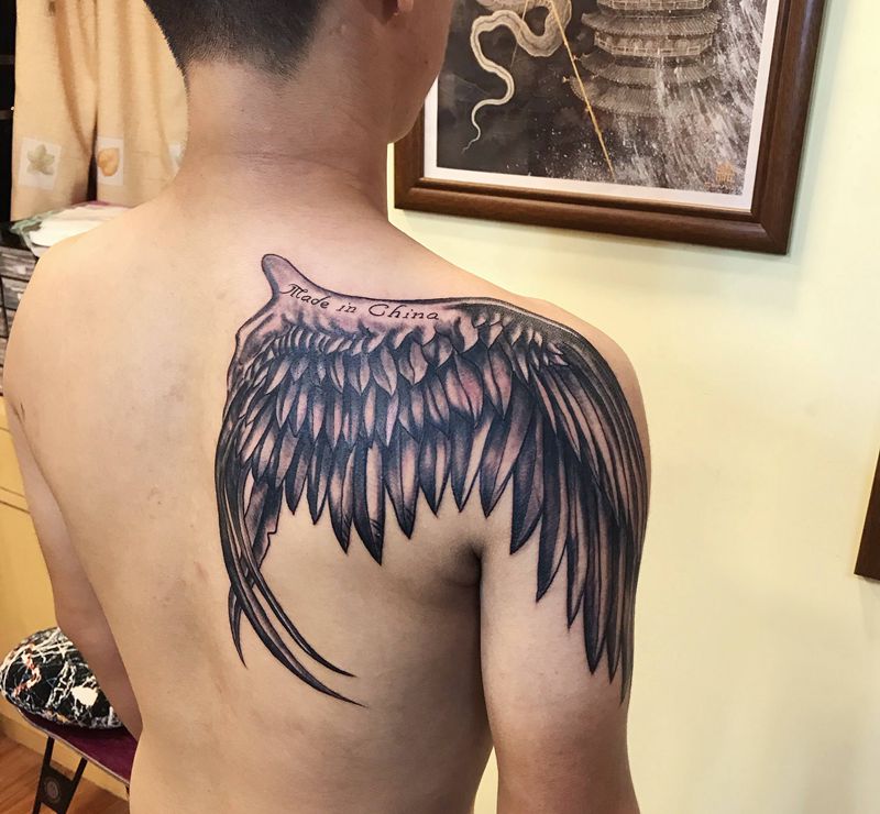 当前位置: 首页 >广东省广州市纹身店-肆海刺青纹身图案>翅膀纹身图片_手臂背部欧美写实纹身图案