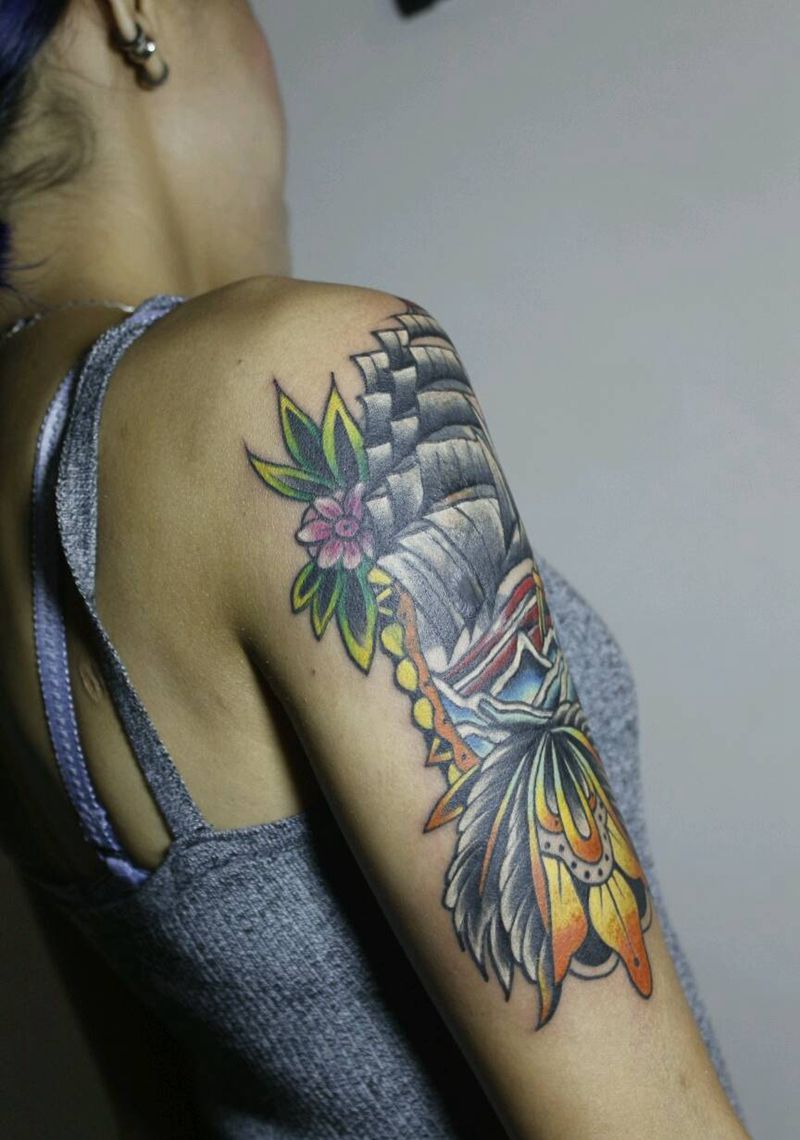 • 纹身吧推荐的披肩图腾半胛纹身图案作品展示