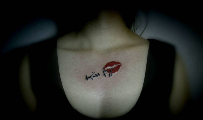 吻纹身图片_胸部清新原创唐日英life成品纹身图案
