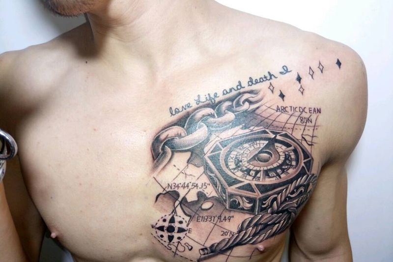 指南针纹身图片_胸部欧美静物唐日英生活刺青成品纹身图案