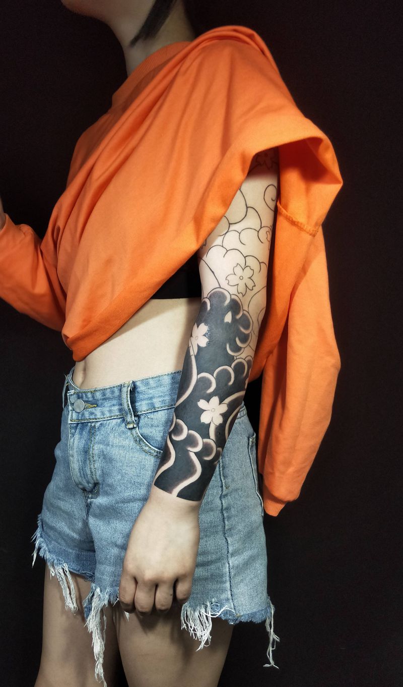 当前位置: 首页 >广东省广州市纹身店-纯针刺青工作室纹身图案>樱花臂上色纹身图片_手臂老传统樱花日式浪花纹身图案