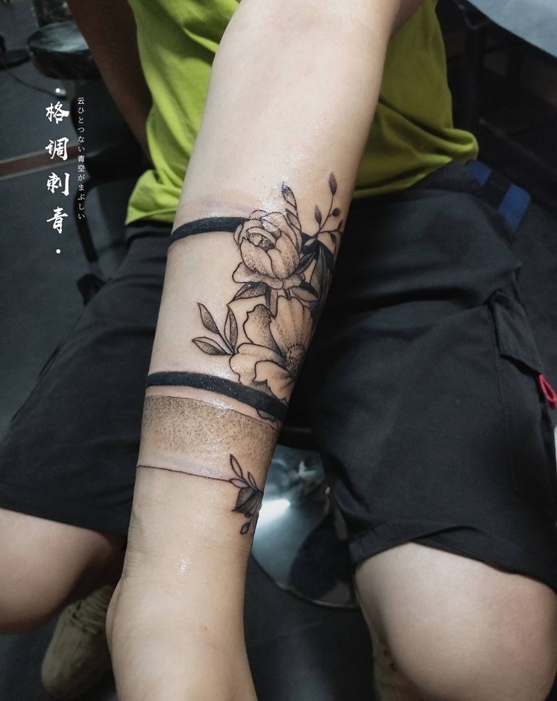 素花小臂纹身图片_手部点刺素花手环点刺纹身图案