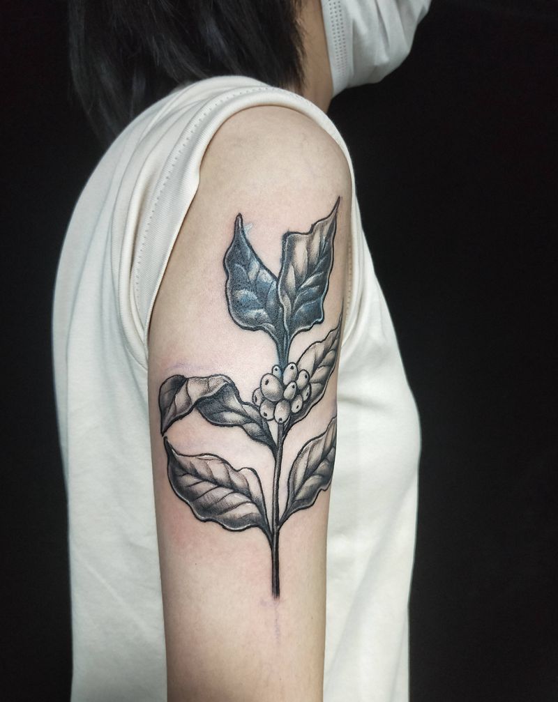 遮盖不开心纹身图片_手臂New School咖啡豆遮盖纹身图案