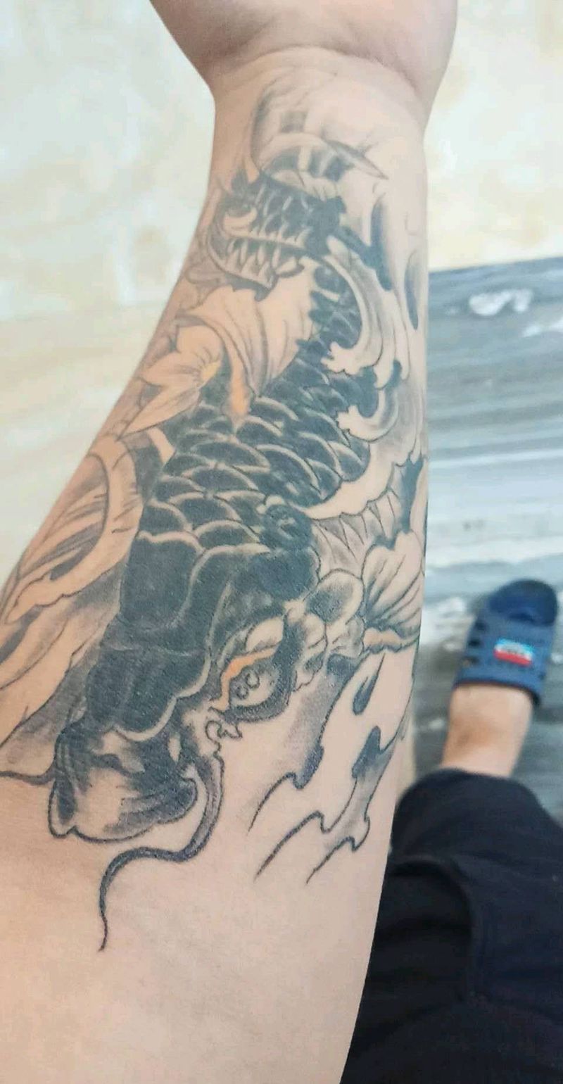 当前位置: 首页 >广东省广州市纹身店-纯针刺青工作室纹身图案>鲤鱼遮盖纹身图片_手部新传统纹身图案