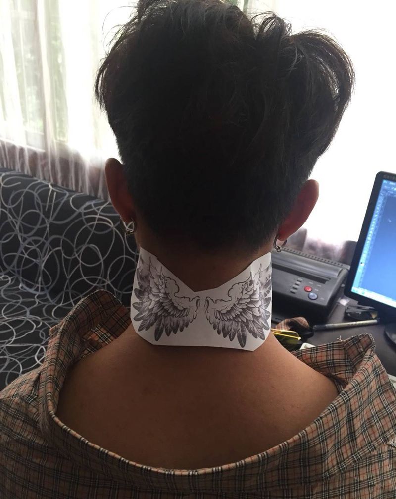 当前位置: 首页 >广东省广州市纹身店-纯针刺青工作室纹身图案>后脖子翅膀纹身图片