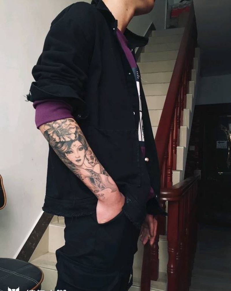 小臂艺妓恢复照,纹身图片_手臂新传统明月艺妓恢复后纹身图案