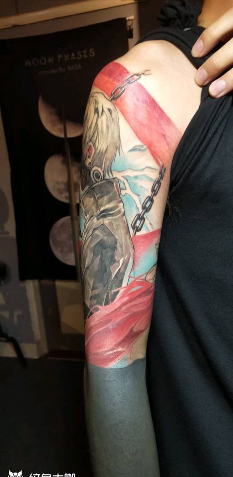 当前位置: 首页 >广东省广州市纹身店-纯针刺青工作室纹身图案>大臂东京喰种纹身图片_手臂New School东京喰种东京食尸鬼彩色纹身图案