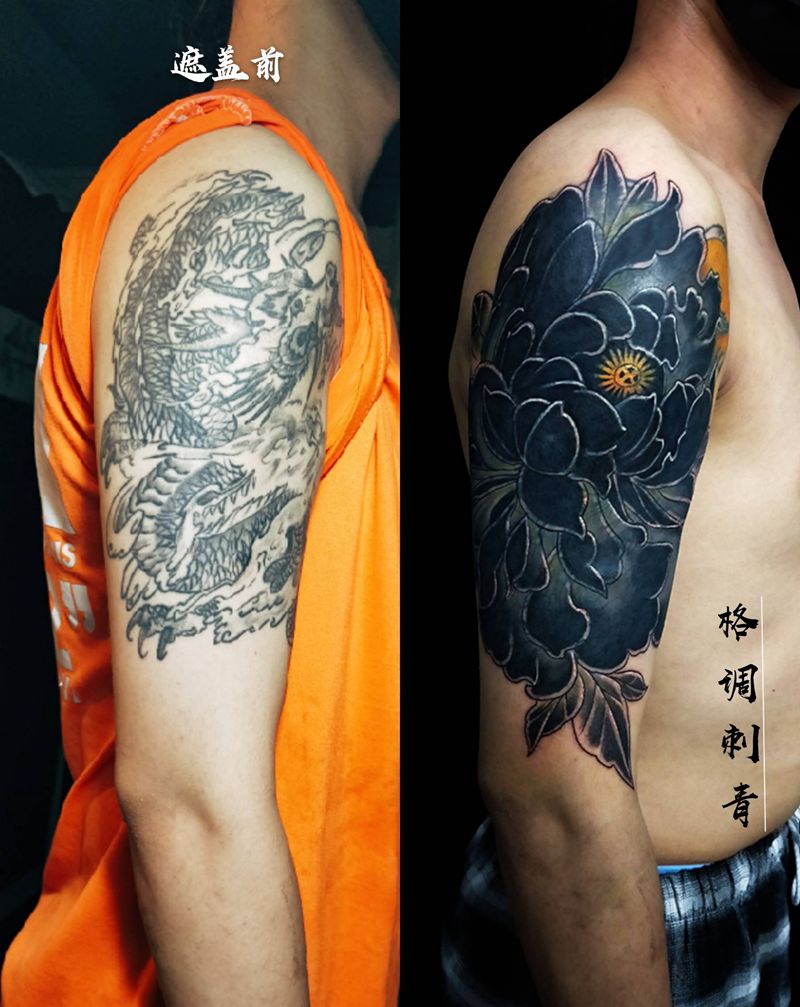 暴力遮盖纹身图片_手部手臂新传统牡丹遮盖纹身图案