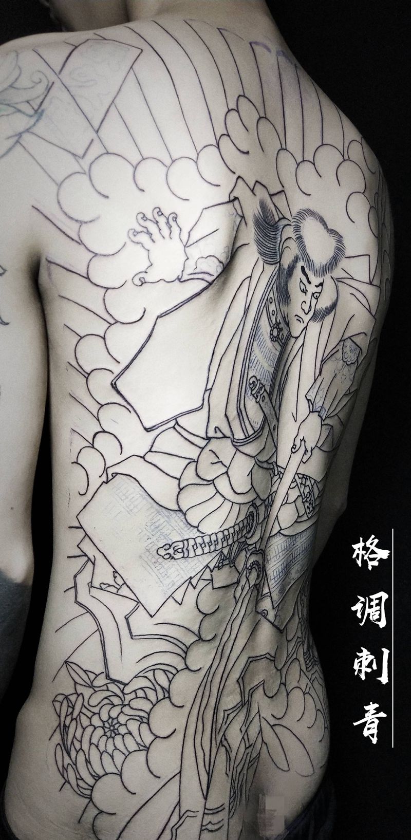 黑灰满背纹身图案