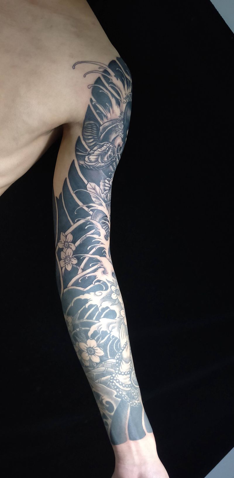 当前位置: 首页 >广东省广州市纹身店-纯针刺青工作室纹身图案>日式花臂纹身图片_手臂老传统新传统艺伎达摩日式纹身图案