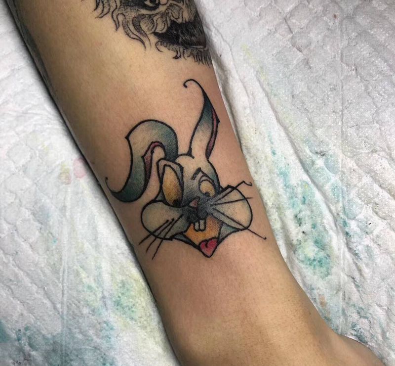 • T包小腿吹火男+阿多福纹身图片_腿部老传统新传统吹火男阿