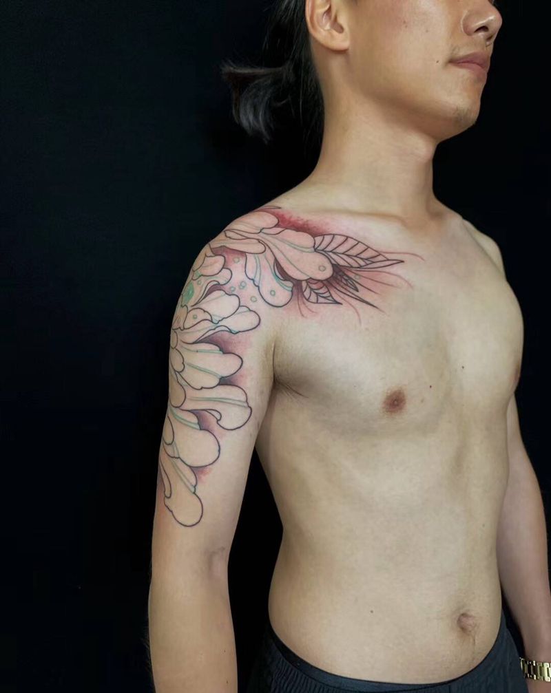 • 女性大花胸纹身_43张霸气漂亮的女性大花胸纹身图案作品