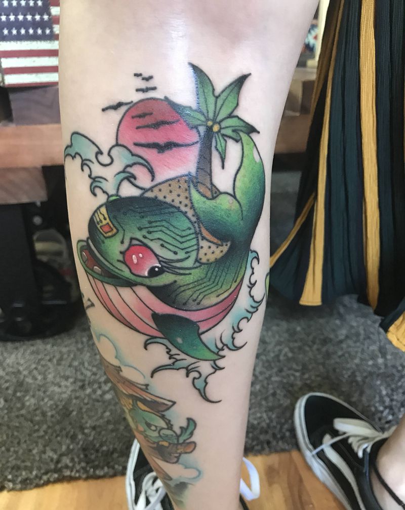 • T网红王老大花腿龙纹身图片_腿部新传统纹身图案