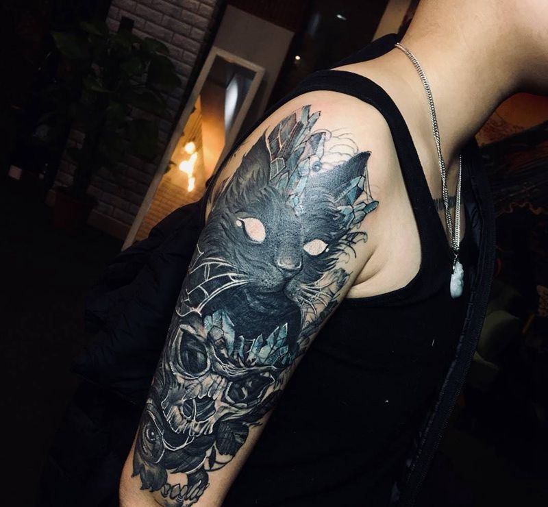 • 纹身吧推荐的披肩图腾半胛纹身图案作品展示