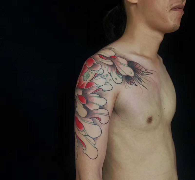 • 女性大花胸纹身_43张霸气漂亮的女性大花胸纹身图案作品