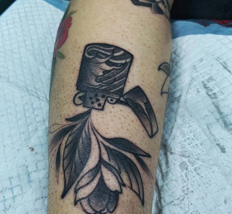 • T包小腿吹火男+阿多福纹身图片_腿部老传统新传统吹火男阿