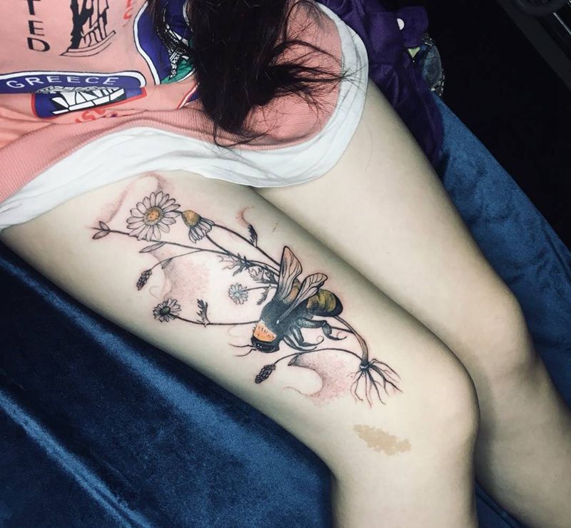 当前位置: 首页 >广东省广州市纹身店-番禺纹画社纹身图案>素雅大腿纹身图片