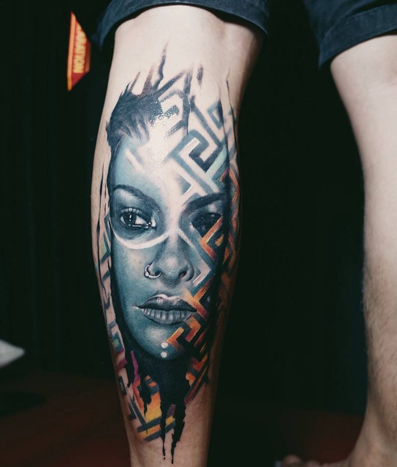 欧美彩色写实纹身图片_成品腿部欧美纹身图案