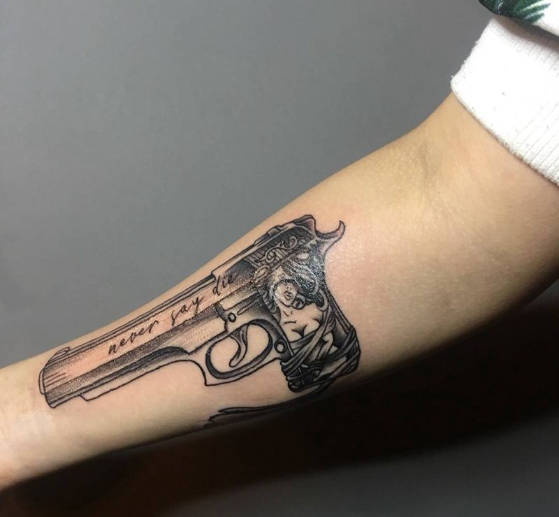 当前位置: 首页 >广东省广州市纹身店-番禺纹画社纹身图案>手枪纹身图片_成品手臂纹身图案